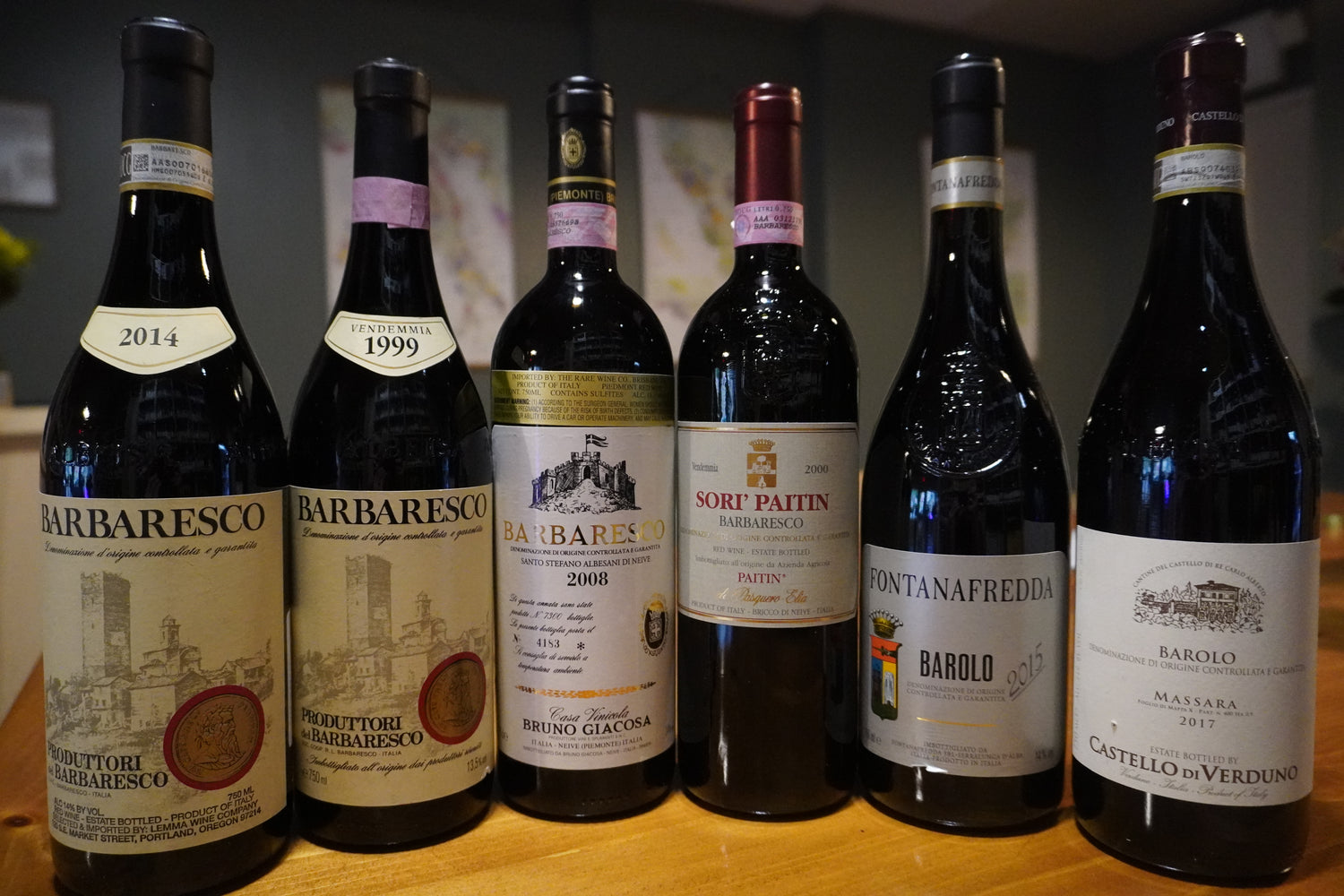| Barbaresco | Diano d'Alba | Barbera d'Asti | Alta Langa (Chard/Pinot Noir Traditional Method) |