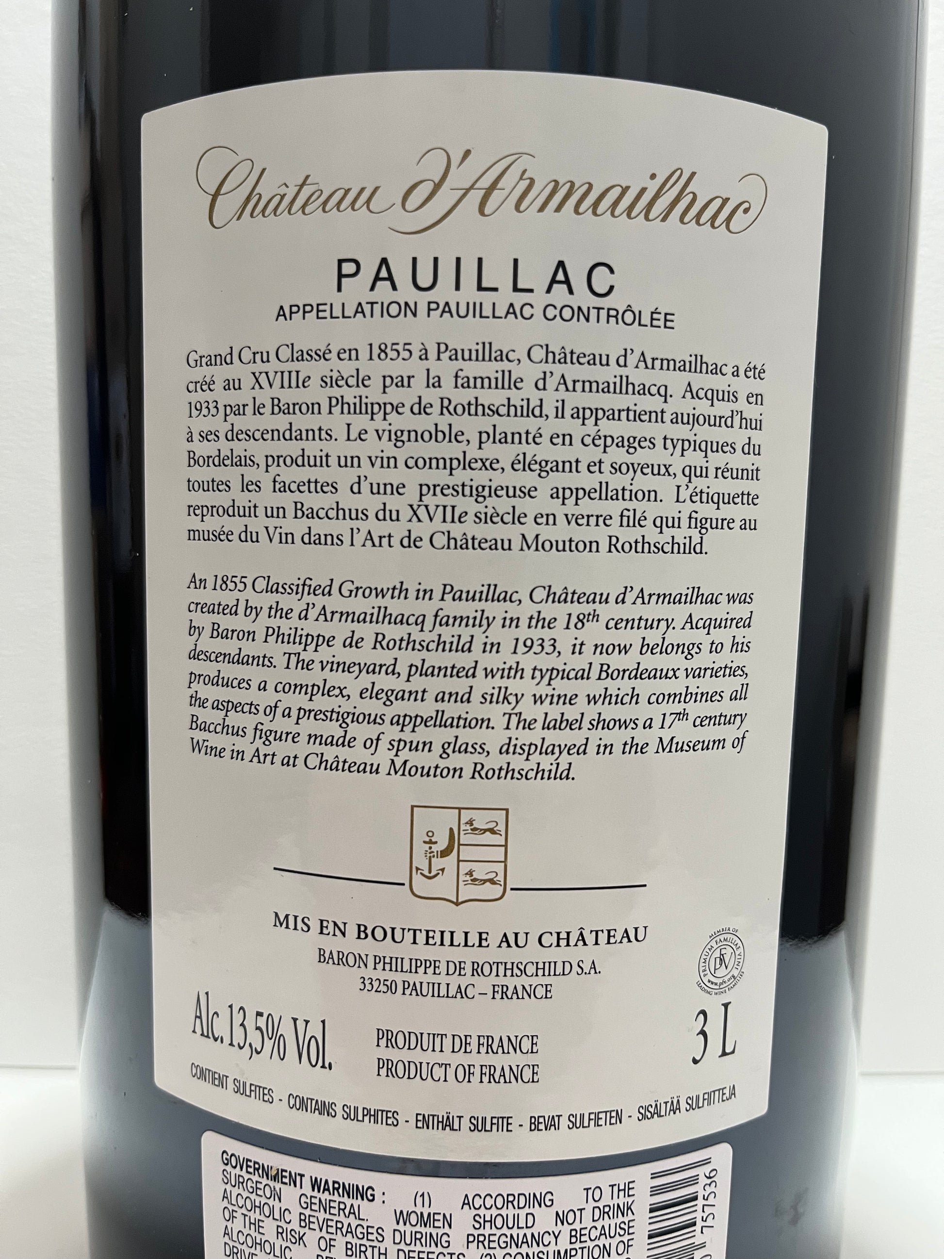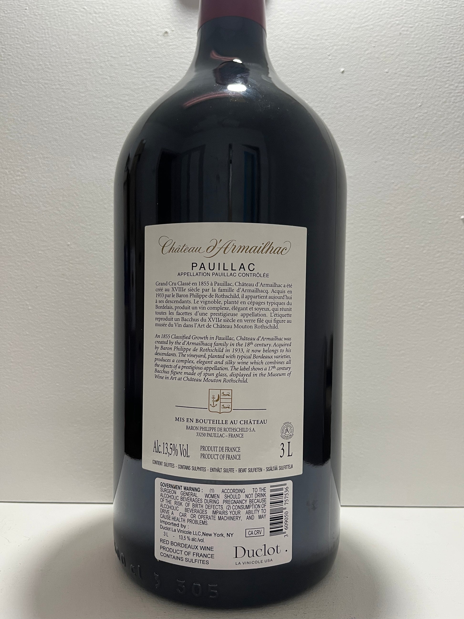 Chateau d'Armailhac, Cabernet Sauvignon, Pauillac, Bordeaux, France 2016 (3 L Jeroboam)
